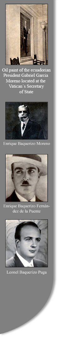 The brothers Baquerizo Moreno were also relatives of Gabriel García Moreno; who was President of Ecuador for the first time in 1861; for second time in 1869 and for third time in 1875. At the year of 1876, Pope Pío IX order to built a statue to honor this ecuadorian´s president for his defense of the catholic religion.